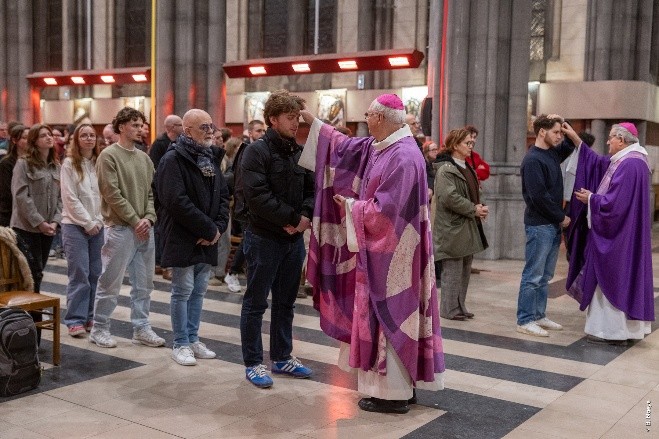 Thánh lễ được cử hành vào Thứ Tư Lễ Tro ngày 5 tháng 3 năm 2025 tại Nhà thờ Đức Bà De la Treille - Nhà thờ chính tòa ở Lille, Pháp. (Ảnh: Brigitte Naeye)