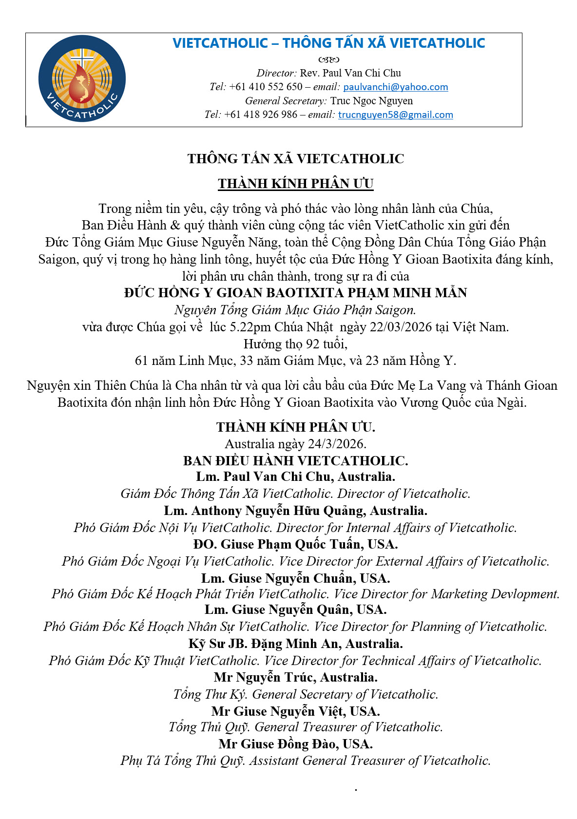 Thông Tấn Xã Vietcatholic – Thành Kính Phân Ưu