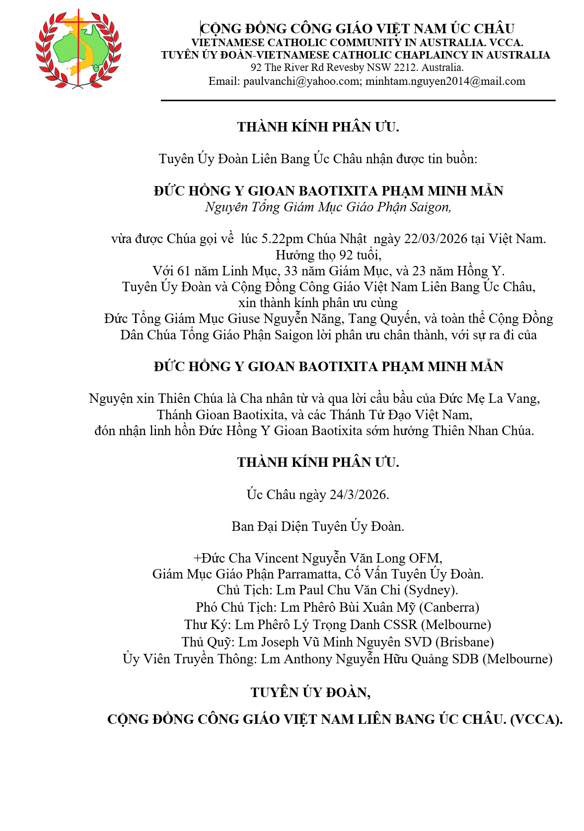 Tuyên Úy Đoàn Liên Bang Úc Châu – Thành Kính Phân Ưu