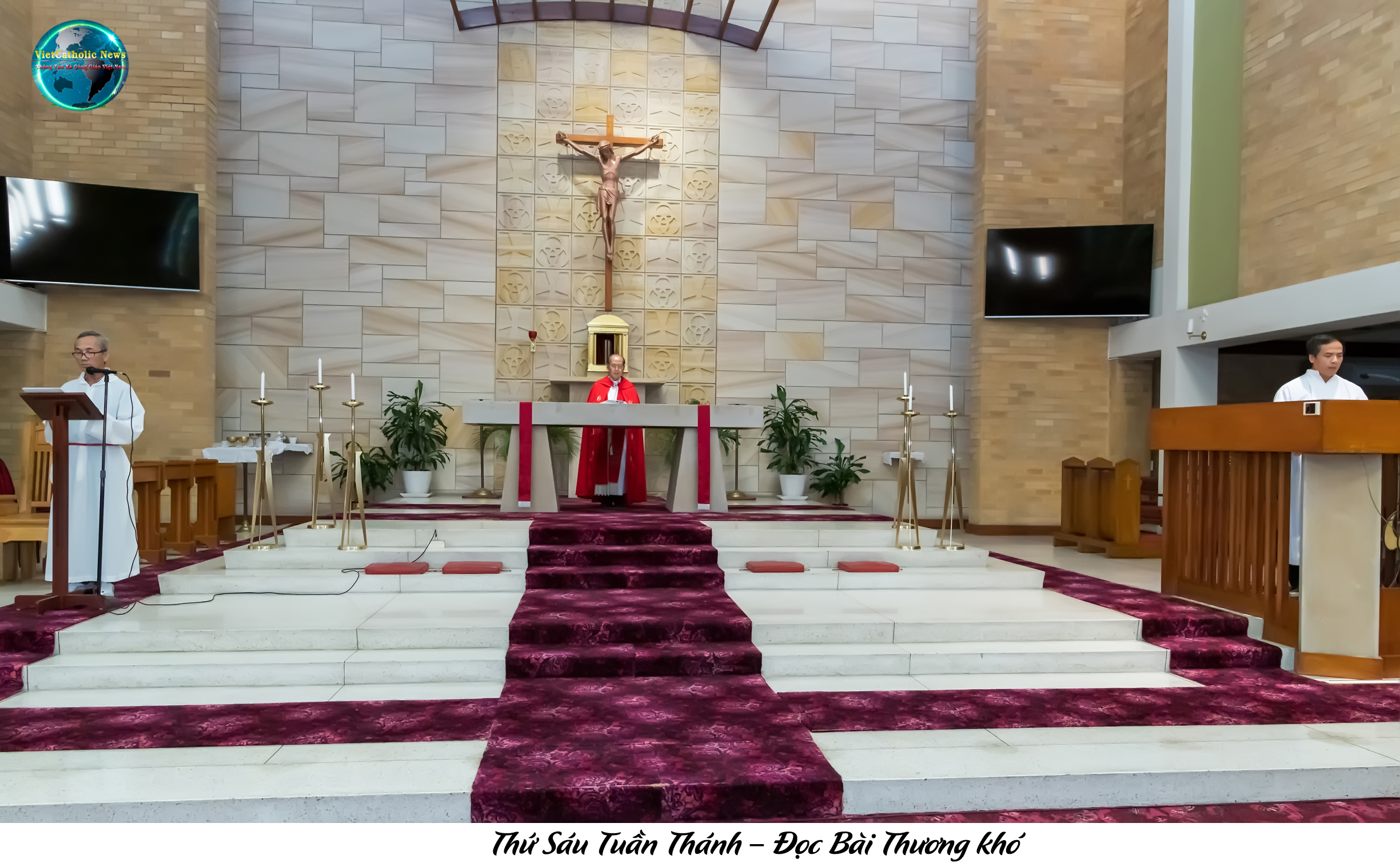 Hôm nay, mỗi người chúng ta ngắm đàng Thánh Giá với hết cả tâm tình chia sẻ đau khổ tột cùng của Đức Chúa Ki-tô, chính Ngài đã gánh vác cây thánh giá là tội lỗi của tôi, của anh, của chị và của cả nhân loại trên đôi vai của mình, Ngài đã mệt nhọc vác đi trên quảng đường dốc đá để nơi chịu đóng đinh để nhân loại có đường sống, Ngài đã chịu đóng đinh trên Thánh Gía để cho nhân loại khỏi bị quăng vào lửa thiêu đốt đời đời.