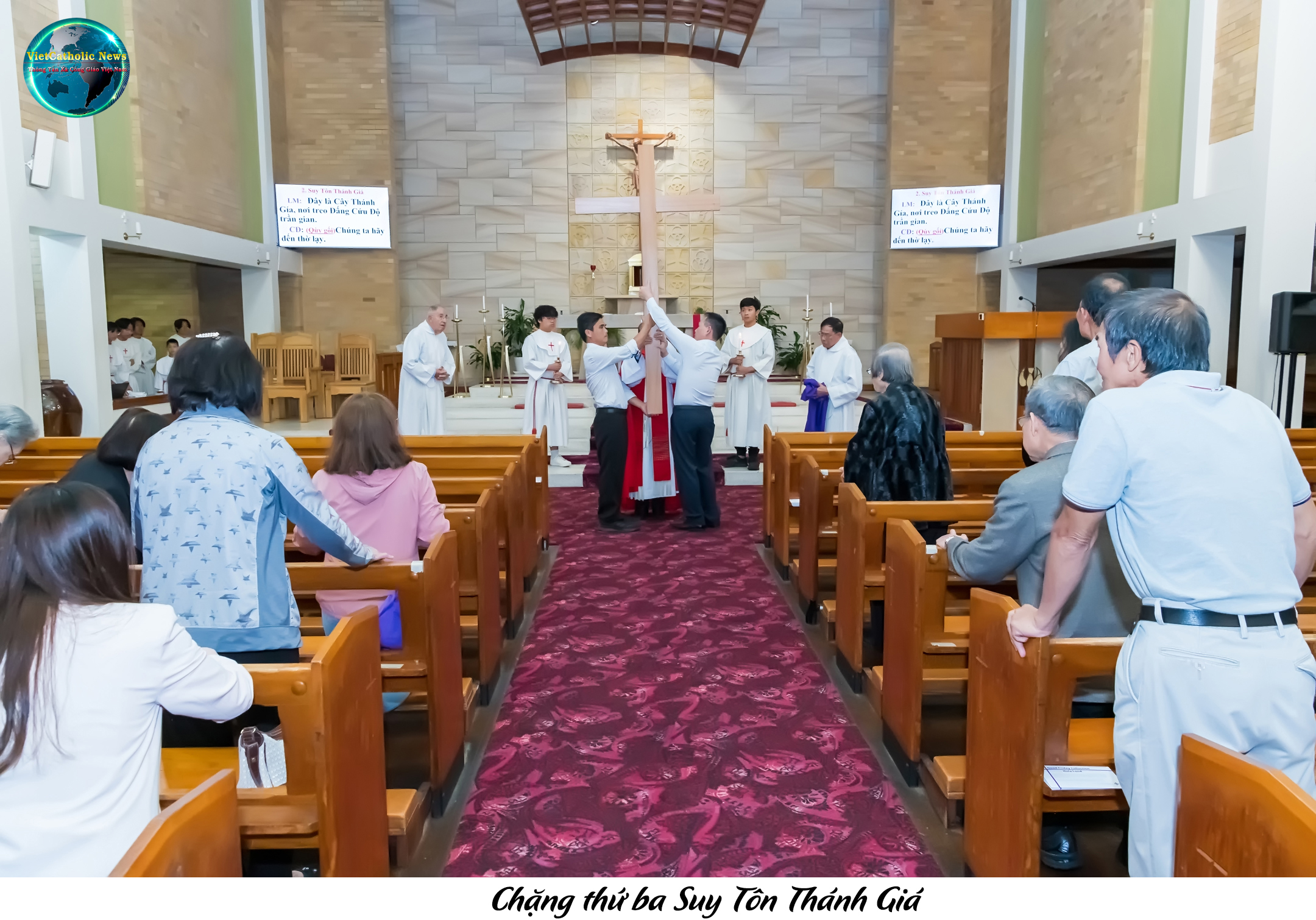 Hôm nay Giáo Hội mời gọi chúng ta giữ chay kiêng thịt, để chia sẻ những khổ hình mà Đức Chúa Giê-su Ki-tô đã chịu vì tội chúng ta, cao điểm của ngày hôm nay chính là giây phút này đây: suy tôn Thánh Giá Đức Chúa Giê-su Ki-tô.