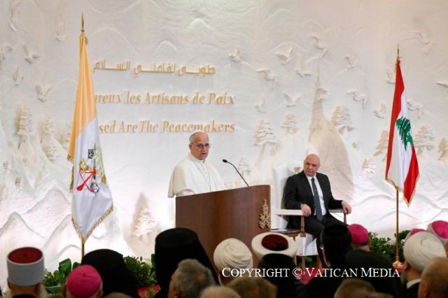 "Phúc cho những người kiến tạo hòa bình", Đức Giáo Hoàng bắt đầu bài phát biểu, đồng thời nói thêm rằng hòa bình "cần sự kiên trì" và "kiên trì để bảo vệ và nuôi dưỡng sự sống". Những phát biểu của ngài được đưa ra trong bối cảnh Lebanon đang tìm kiếm sự ổn định sau nhiều năm tê liệt chính trị, sụp đổ kinh tế và những tổn thương dai dẳng của xung đột khu vực.