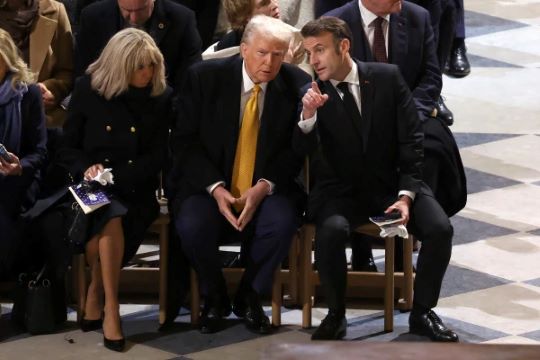 Brigitte Macron, Donald Trump và Emmanuel Macron tham dự buổi lễ mở cửa trở lại Nhà thờ Đức Bà Paris vào ngày 7 tháng 12 năm 2024 tại Paris. Ảnh: Pascal Le Segretain/Getty Images cho Notre-Dame de Paris