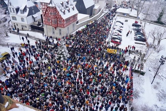 Giáo phận Limburg cho biết các nhà tổ chức dự kiến sẽ có 300 người tham dự cuộc biểu tình “chống phân biệt chủng tộc, chủ nghĩa phát xít và Giải pháp thay thế cho nước Đức”, nhưng 3,000 người đã đến tham dự.