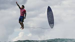 Vận động viên lướt ván Gabriel Medina, người giành huy chương đồng tại Thế vận hội Paris 2024 ở Tahiti, đã xuất hiện trong một trong những bức ảnh mang tính biểu tượng nhất của sự kiện này.