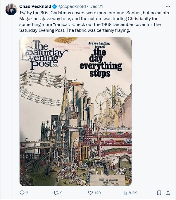 Bạn có thể xem bìa tạp chí "Giáng sinh" của The Saturday Evening Post năm 1968. Nó hơi đáng lo ngại. Nếu đức tin chung không mất đi, thì kết cấu chắc chắn đã bị sờn.